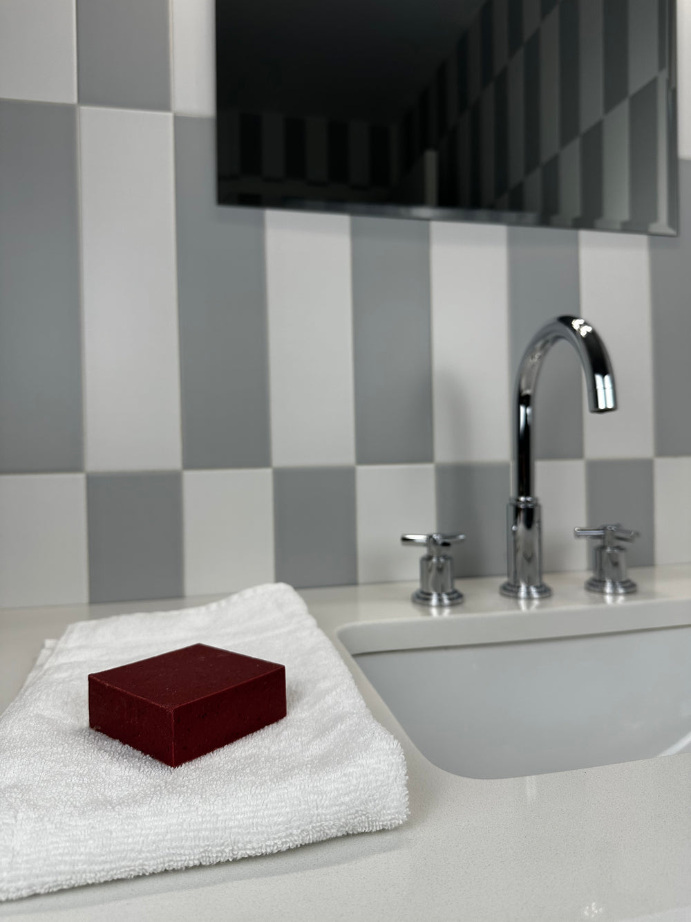 Not your average bar—our Bloody Mary Soap is an herbaceous blend of heirloom tomato, celery leaf, cracked pepper, and sea salt. With just a dash of tabasco-inspired spice and a clean vodka accord (alcohol-free), this bold and savory bar is refreshingly different. Crafted for adventurous noses and lovers of the garden-fresh and zesty, it's a true brunch-time favorite—without the hangover.